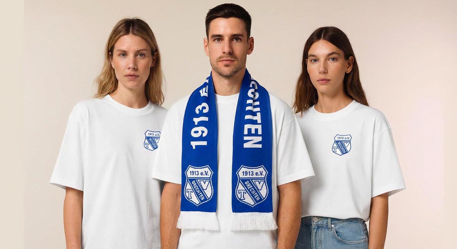 Mit der offiziellen Vereinskleidung des TV Brechten bist du auf und neben dem Platz perfekt ausgestattet. Gemeinsam mit SportBros bieten wir dir moderne Teamwear, die Funktionalität und Vereinsstolz vereint. Jeder Kauf unterstützt deinen Verein direkt, denn ein Teil des Erlöses fließt zurück an den TV Brechten. Qualität, Service und Leidenschaft – dafür steht dieser Shop.